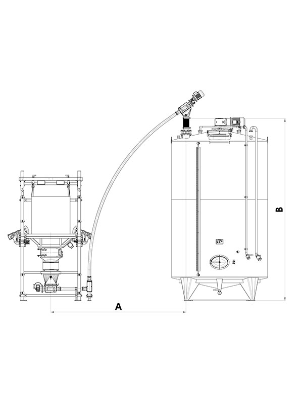 - Flachbodenrührwerk mit volumetrischer oder gravimetrischer Schneckendosierung für schwer fließende Produkte.
